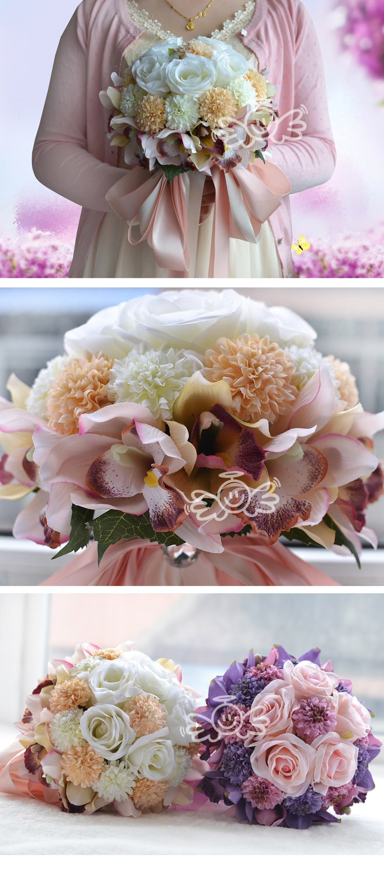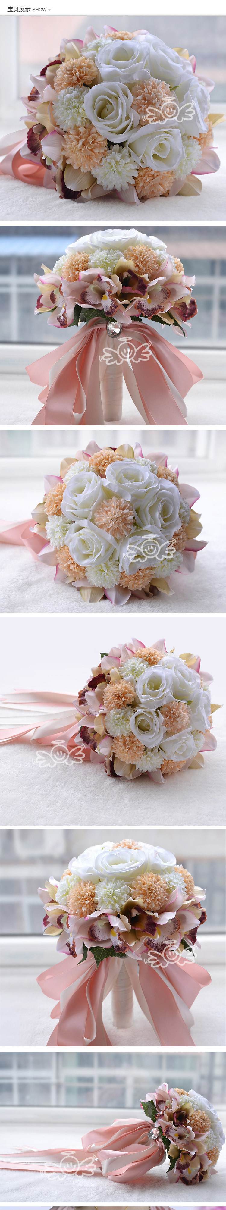 европейский Стиль Розы Орхидея Искусственные Цветы с Алмаз Свадебные Ленты Букет Свадебные Украшения Поставки buque де флорес