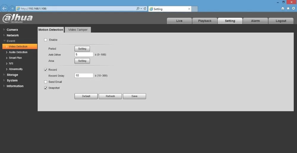 > Обнаружение неправильности: обнаружение движения, подделка видео, без SD-карты, полная SD-карта, ошибка SD-карты, отключение сети, IP конфликт, Незаконный доступ, Обнаружение напряжения