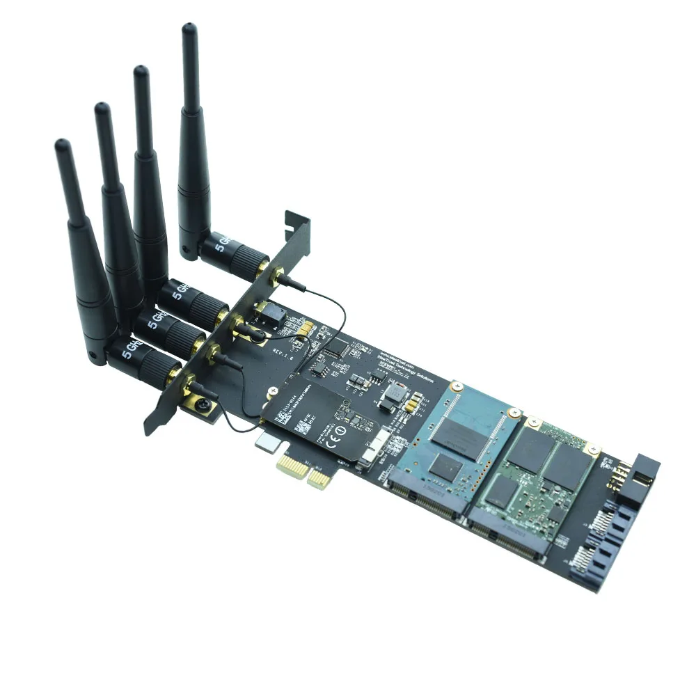 Обзор продуктаЭто интегрированное расширительное решение, которое включает в себя высокоскоростной WiFi, Bluetooth, USB аудио, двойной mSATA SSD для настольного ПК, цель которого заключается в упрощении расширения ПК. Он может быть идеально совместим с Windows и Mac OS. Кроме того, WiFi, Bluetooth, USB аудио, SSD являются бесплатными драйверами на Mac OS.