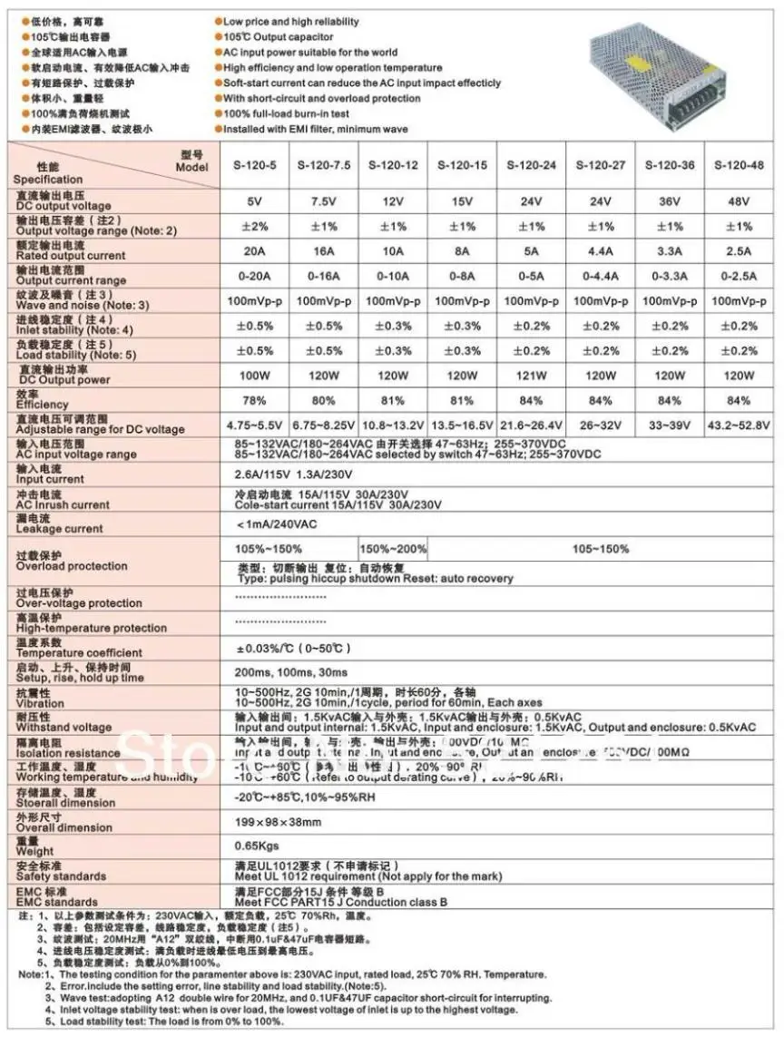 S-120W | 5 В | 12 В | 15 в | 24 В | 36 В | 48 В | |||
