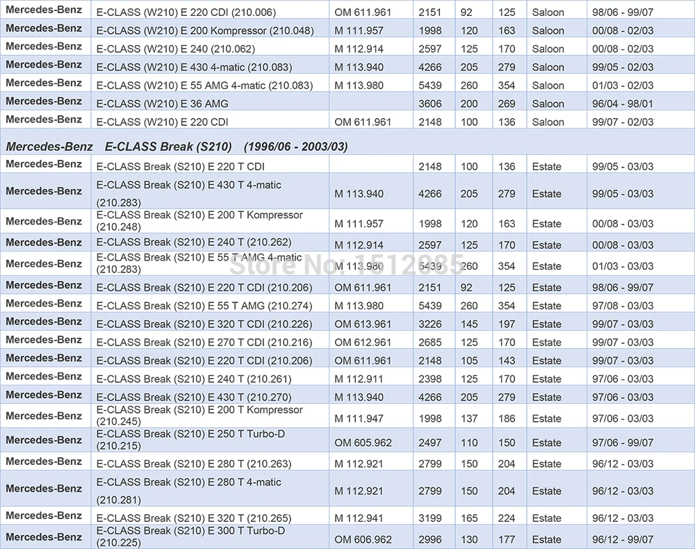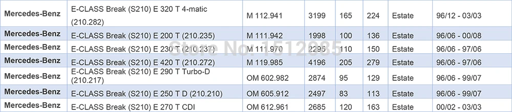 Установка и совместимость для Mercedes-Benz E-Class S210 W210