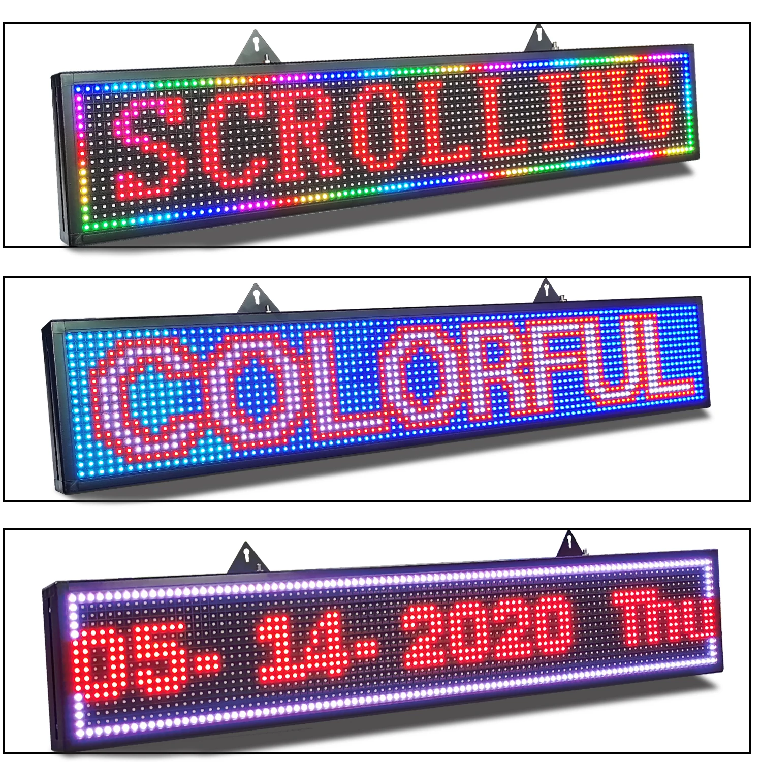 ◆Product: светодиодная вывеска ◆Voltage: 110V ◆ Цвет: полный цвет ◆Угол обзора: 120 °/70 ° ◆Шаг пикселей: плотность 10 мм ◆Яркость (CD/м²): ≥ 5000CD ◆Разрешение шкафа (пиксель): W96 x H16 ◆Cabinet Размеры: L 40 футов х 8 х D 2,2 дюйма ◆Теоретический светодиодный срок службы: >100000 часов ◆ Метод управления: управление через USB и WIFI ◆Материал: Алюминий из алюминиевого сплава ◆Вес нетто: 3 кг ◆Product Размеры: 100x20x5,5 см (40x8x2,16 дюймов) ◆Размер упаковки: 108x7x23 см (43x9x3 дюйма)