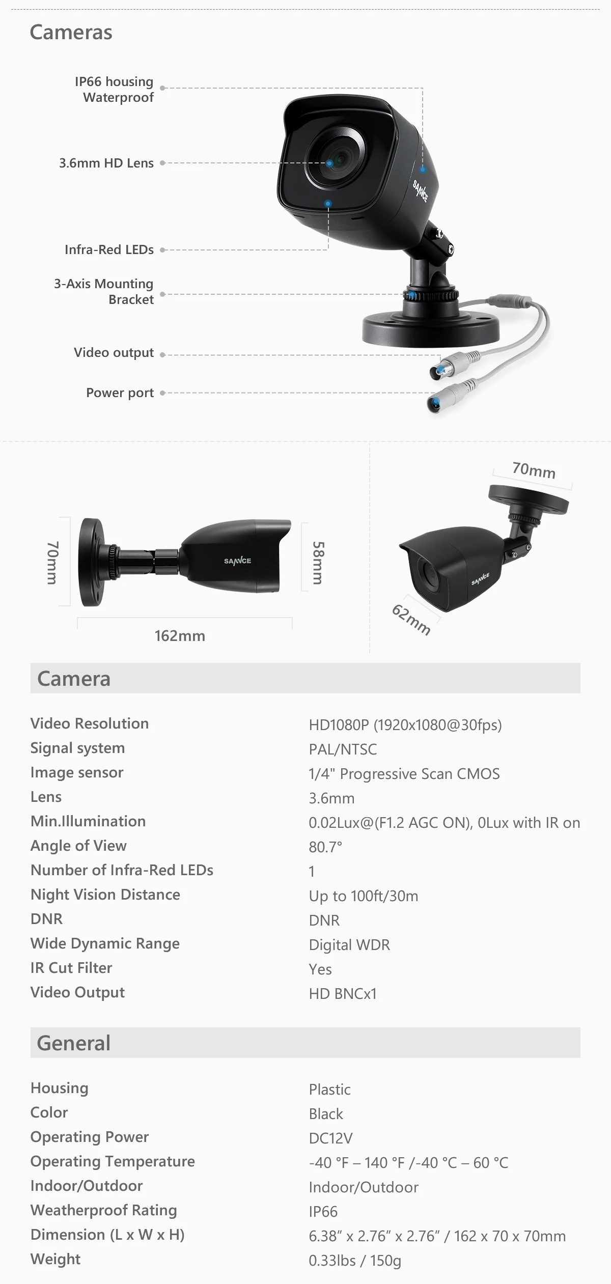 SANNCE 8CH 1080N домашняя система видеонаблюдения 5в1 HDMI с 8 шт. 720P наружная непогоды
