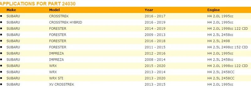 SUBARU Модель: Exiga, Forester, Impreza, Impeza WRX, XV Levorg, WRX/LEVORG, Crosstrek, Crosstrek Hybrid, Forester, WRX, WRX STI, XV Crosstrek