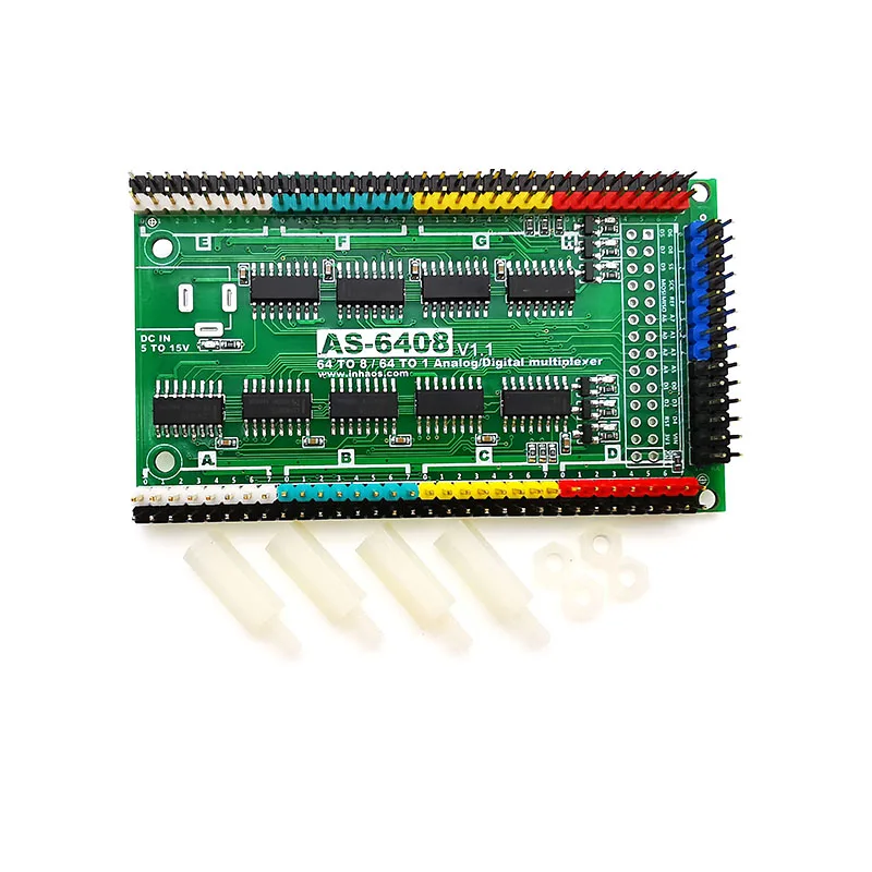 1, AS-6408 имеет два выхода, один-64CH <-> 8CH и один-64 <-> 1CH, выход 1CH-после выхода 8CH, и они могут работать одновременно. 2, AS-6408 имеет встроенное ядро UNO, это означает, что он может работать отдельно, чтобы обрабатывать вход 64CH и считывать от A0 до A7 с 10bit ADC, А затем отправляются данные через TXD/RXD, если вы используете ядро RF UNO, это может быть очень легко внедрено беспроводное получение данных. 3, Уровень входного сигнала не должен превышать VCC (диапазон от 0 до VCC), в противном случае это может привести к искажению сигнала. 4. Контрольный сигнал является стандартным COMS TTL-3.3V уровнем.