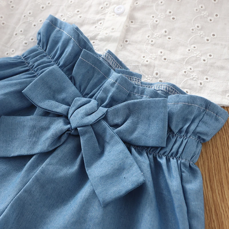 Humor Bear/Одежда для девочек, Новинка лета 2019, детская Кружевная футболка на бретельках с бантом + короткие штаны в полоску, комплекты детской одежды без рукавовUS $7,9/