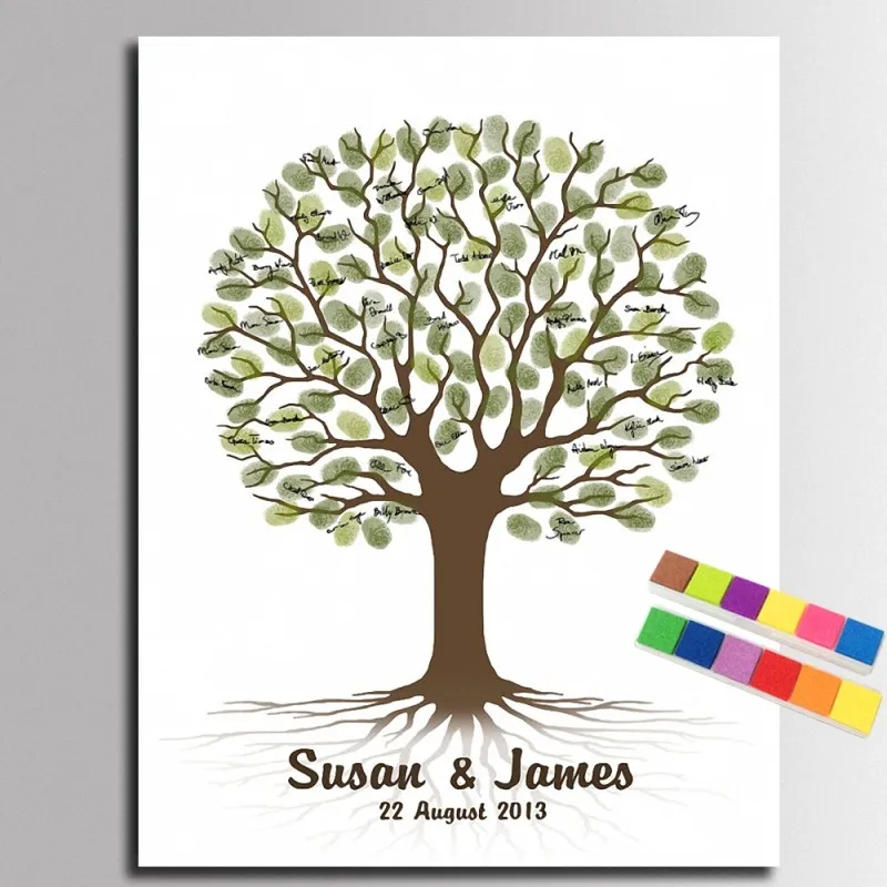 1. Уникальная Гостевая книга Альтернатива. Очень уникальная идея, если вы ищете что-то особенное и особенное. 2. Легко наносится. Просто оставьте свой отпечаток пальца на нем с чернильными накладками, и вы можете спроектировать то, что вам нравится. 3. Это дерево с изображением большого пальца идеально подходит для многих случаев. Свадебный День Рождения Выпускной детский душ или семейные праздники. 4. Чернила легко смываются с пальца. Материал: холст (более прочный, чем бумага)