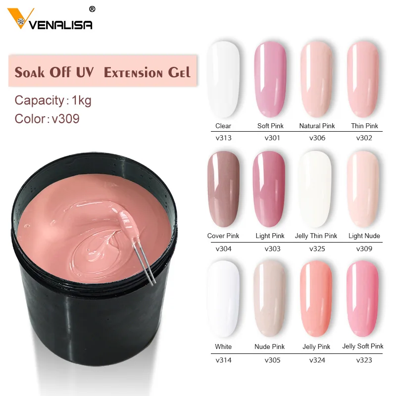 #801V CANNI UV LED гель 1 кг объемная упаковка для маникюра, салонов, кристально прозрачный УФ-покрытие, гель для ногтей, Твердый Камуфляж, желе цвета