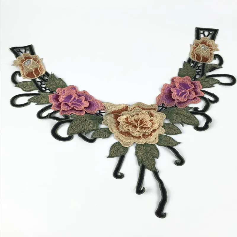 3D цветок пион вышитые кружева декольте Воротник Аппликация Патчи Скрапбукинг рельефная одежда швейная ткань одежда Pathces