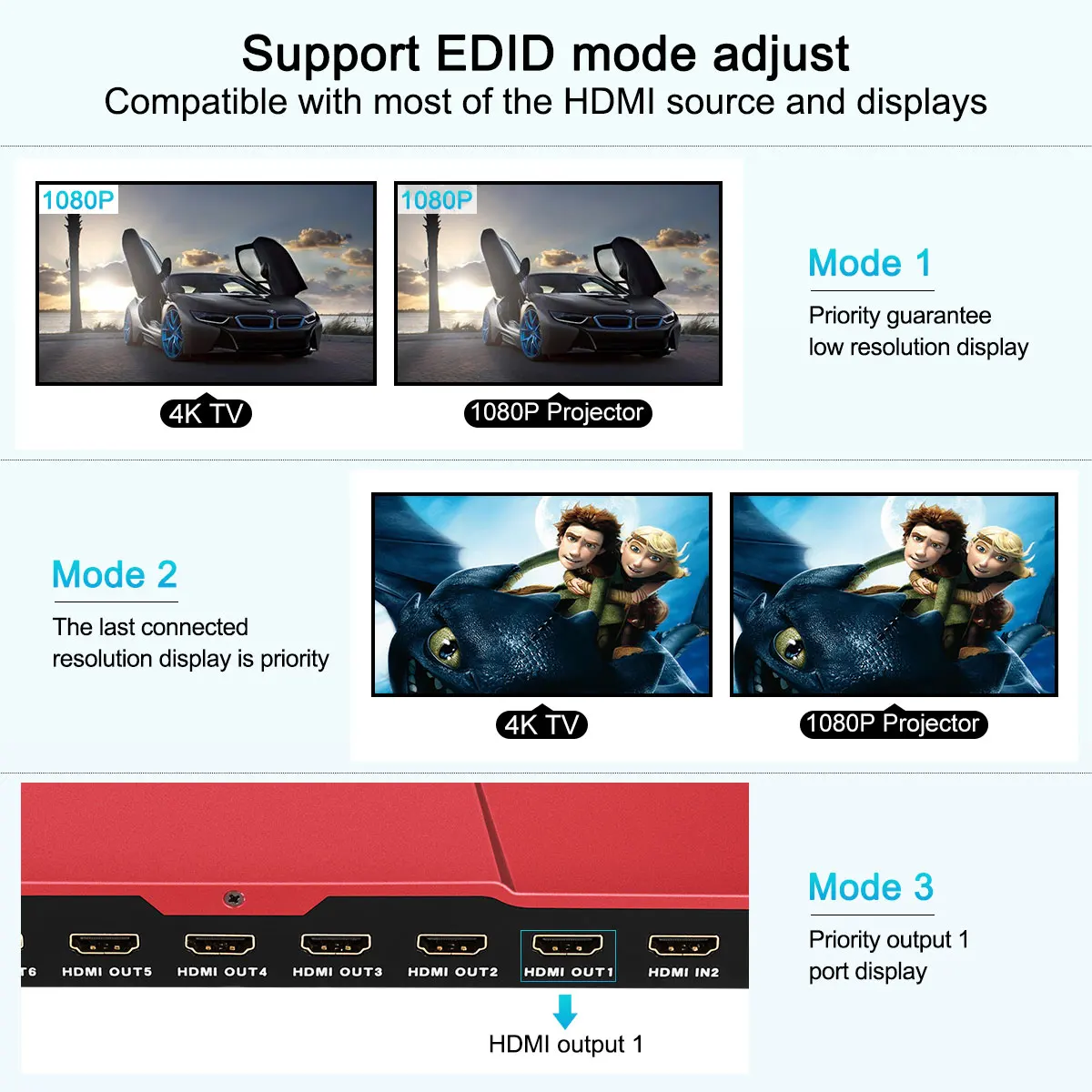 7. Поддержка режима EDID, совместима с большинством источников HDMI и дисплеев