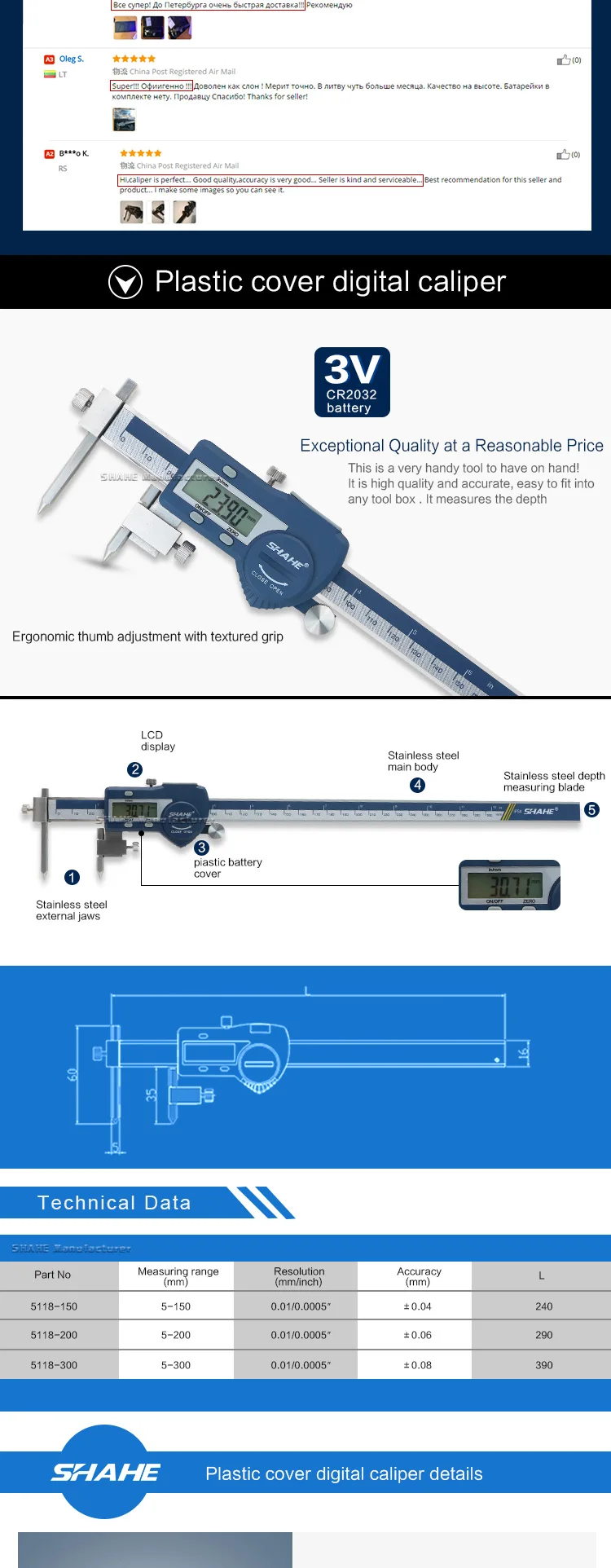 1. Закаленная нержавеющая сталь основная шкала и измерительные челюсти