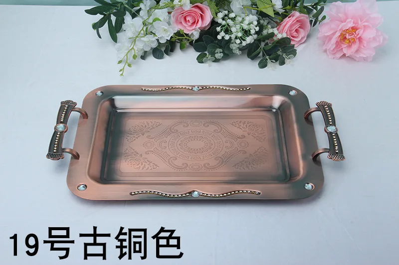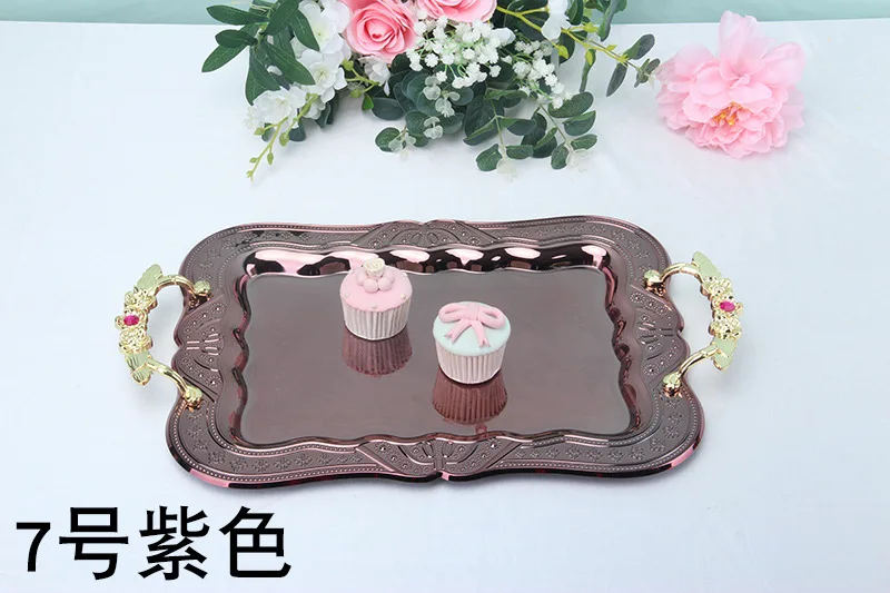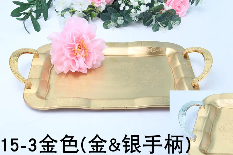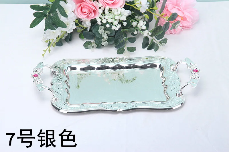 Номер товара; FT018 Наименование товара Модные металлические подносы Цвет; Посеребренный, позолоченный и т. Д. Размер; Общая длина 50 см, общая ширина 30 см Особенность: металлический лоток для хранения материалов, декоративная поверхность из бисера