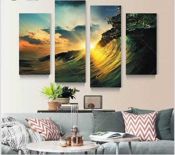 Небольшой свежий Лотос Холст Картина Зеленый абстрактный растение стены