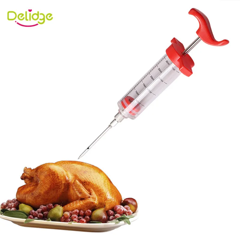 Delidge 1 комплект Нержавеющая сталь иглы мясо инжектор вкус маринад кулинарный шприц для специй Пособия по кулинарии мясо птицы куриного мяса индейки инструментов для барбекю