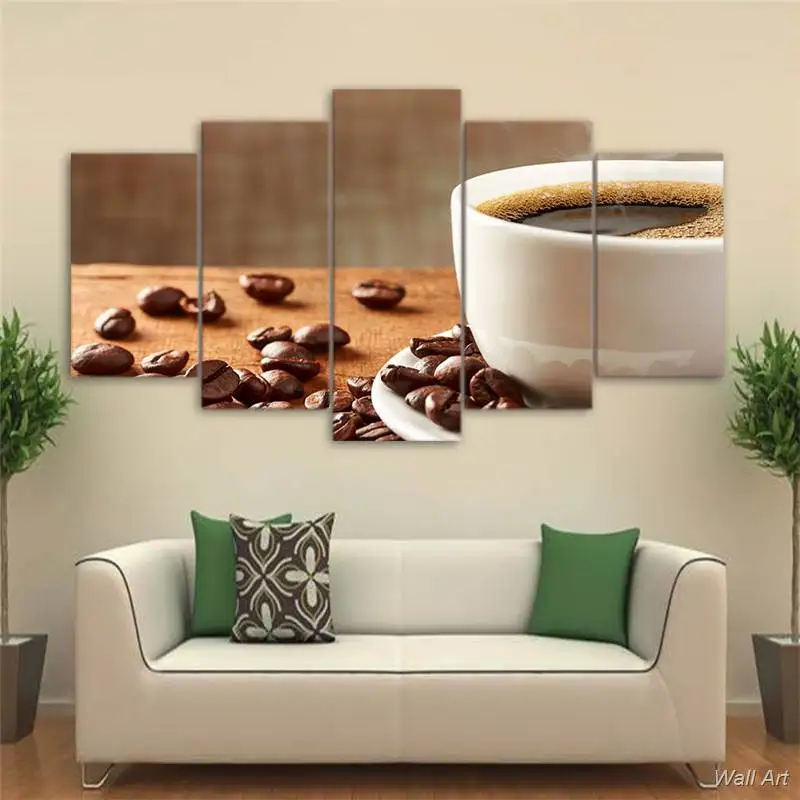 Hd печать 5 шт Холст Искусство пить живопись кофе бобы в рамке настенные фотографии для гостиной современный Бесплатная доставка-92551-YP