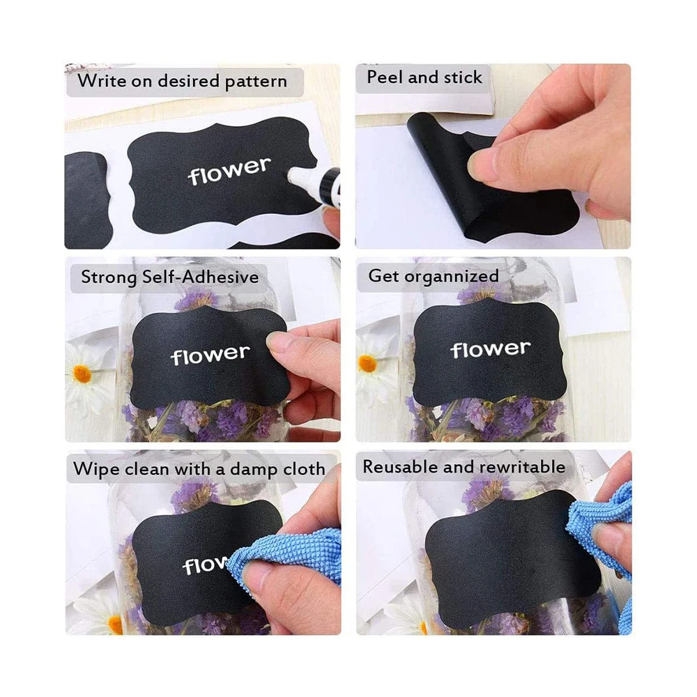 80-упаковка больших съемных самоклеющихся этикеток для досок своими руками с 1 стираемыми меловыми маркерами-идеально подходит для банок и канистр