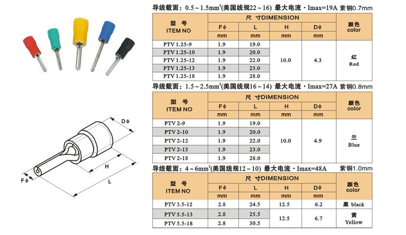 PTV2-10 Pin-Shaped Pre-insulating Terminal Cold pressed terminals/Cable Connector/Wire Connector