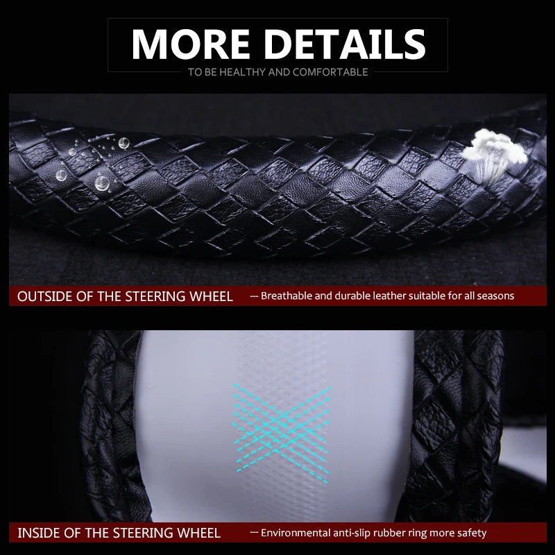 Плетение придает ощущение моды, мягкая искусственная кожа будет чувствовать себя очень комфортно во время вождения. Он также выглядит круто и значительно улучшает стиль вашего автомобиля.