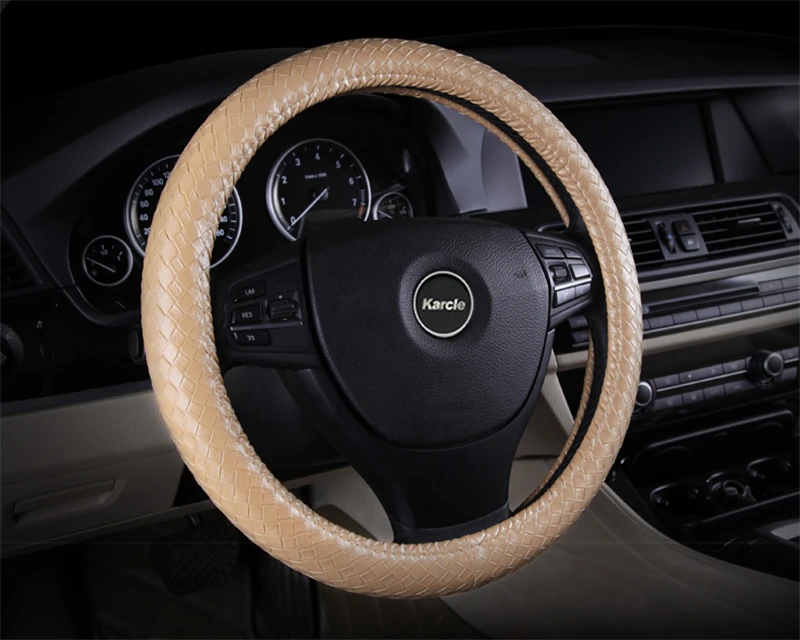 Karcle чехол рулевого колеса автомобиля из искусственной кожи нескользящий 38 см Универсальный автомобильный чехол на руль автомобильный Стайлинг текстура противоскользящая