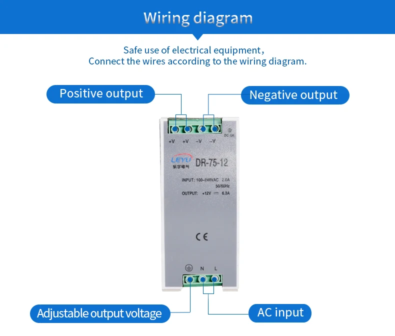 | Модель | DR-75-12 | DR-75-24 | DR-75-48 | Напряжение постоянного тока | 12 В | 24 В | 48 В | Номинальный ток | 6.3A | 3.2A | 1.6A | Диапазон тока | 0-6.3A | 0-3.2A | 0-1.6A | Номинальная мощность | 75,6 Вт | 76,8 Вт | 76,8 Вт | Пульсация и шум | 100mVp-p | 150mVp-p | 240mVp-p | Напряжение Adj. Диапазон | 12-14 в | 24-28 в | 48-53 в | Настройка, время подъема | 1000 мс, 60 мс/230 В переменного тока 1800 мс, 60 мс/115 В переменного тока при полной нагрузке | Время ожидания | 60 мс/230 В переменного тока 12 мс/115 В переменного тока при полной нагрузке |