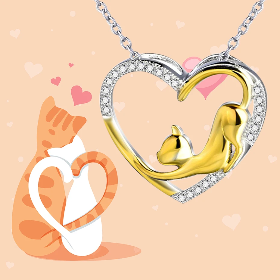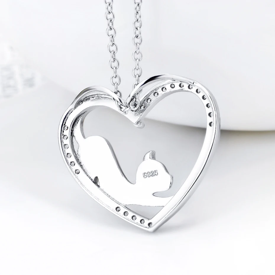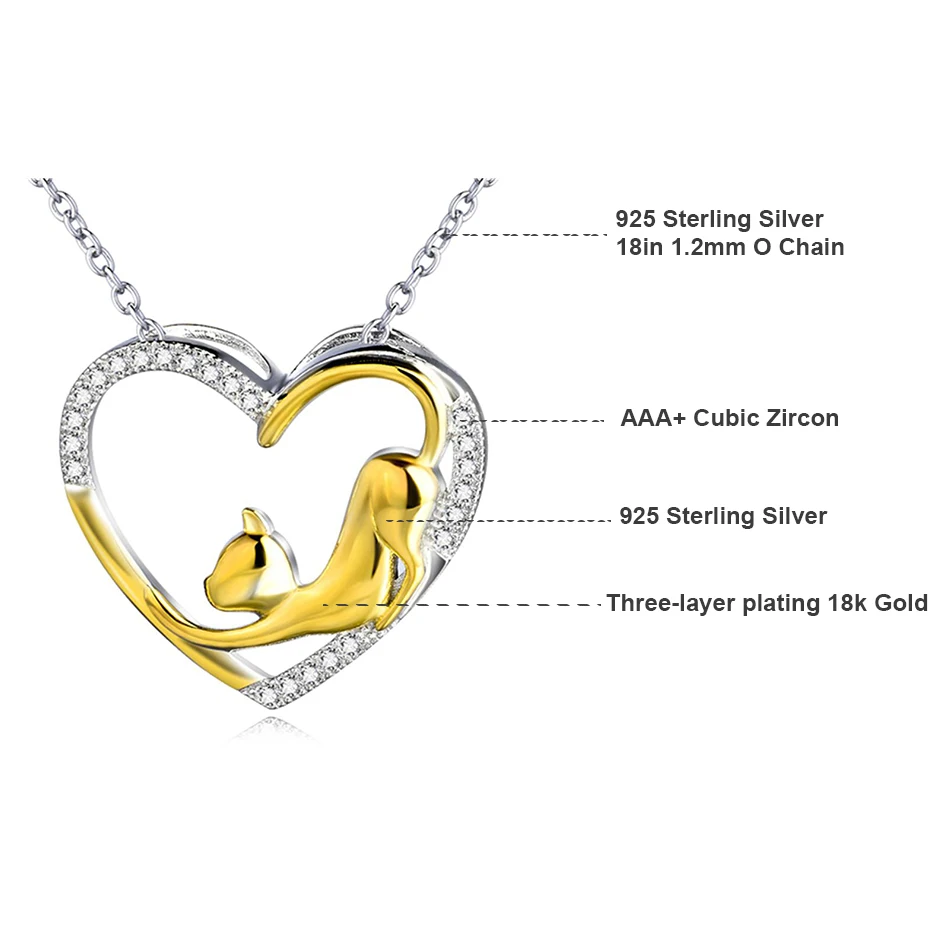 ● Ожерелье с кулоном в виде сердца и кошки, милая подвеска. ● Подарок для девочек, влюбленных и мам. ● 18 дюймов 1,2 мм O Цепь + 25 мм * 21,2 мм подвеска ● Серебряные ювелирные изделия 925 пробы