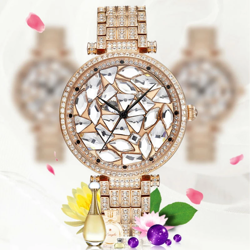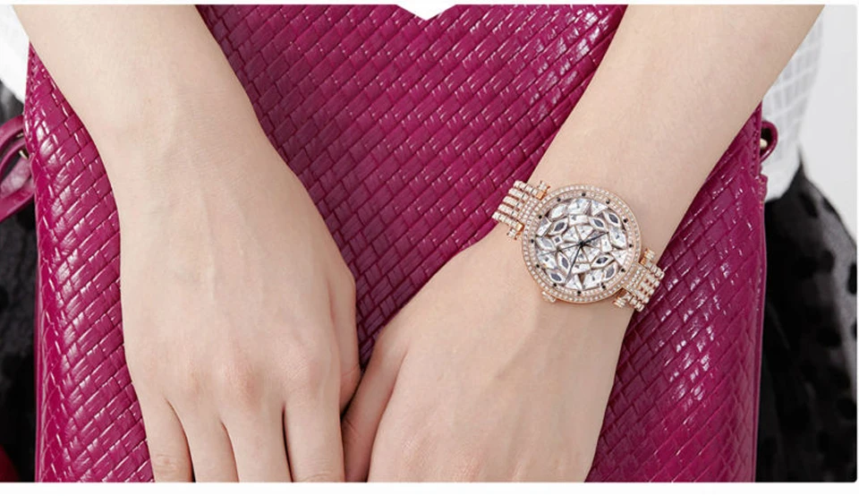 Сверкающий дизайн циферблата, кристаллы вокруг циферблата показывают изысканность и великолепность этих стильных часов