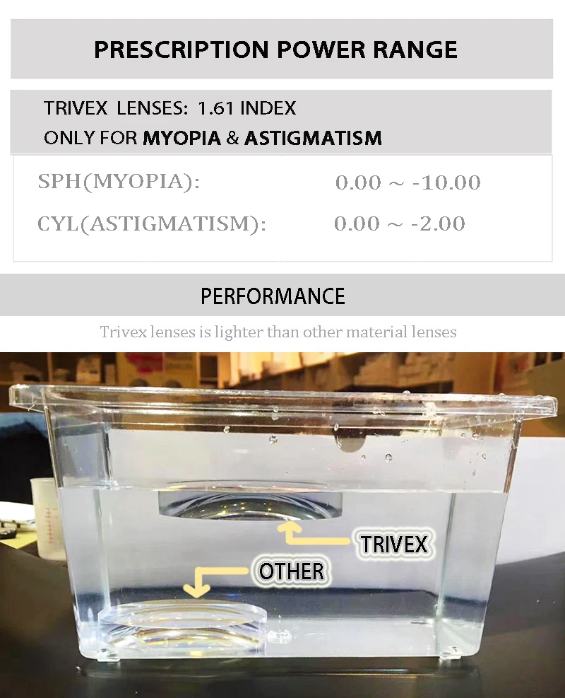 1,61 линзы Trivex изготавливаются только с указанным ниже диапазоном рецепта: