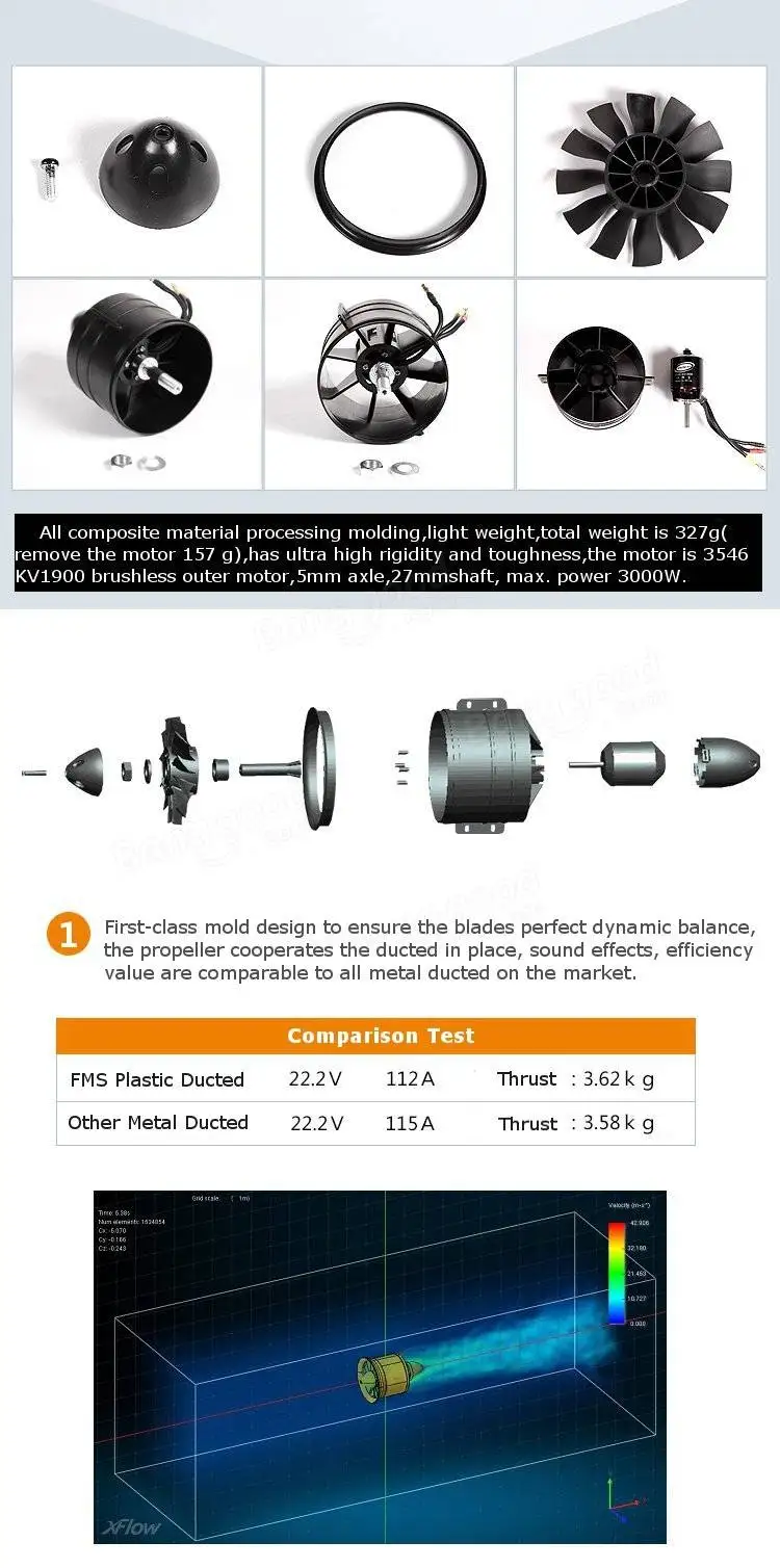 Двигатель: 3546 KV1900 (Диаметр вала: 5 мм, Длина вала: 27 мм, максимальная мощность: 3000 Вт, разъем типа «банан»: 4 мм)