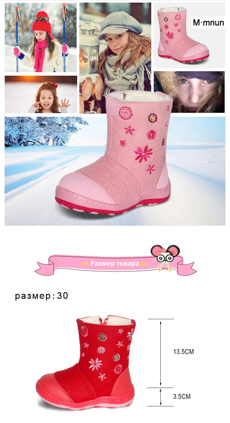mmnun российской известный бренд шерсти овчины чувствовал обувь дети зимнюю обувь девушка сапоги тепло дети снег сапоги детских зимних сапог