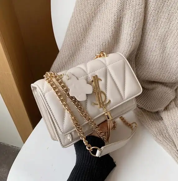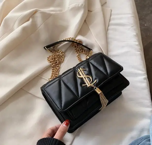 Женская сумка через плечо из искусственной кожи на цепочке модная однотонная
