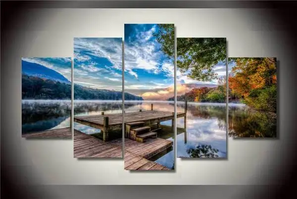 5 шт. абстрактные современные домашние деревья озера настенные картины холст искусство Hd печать живопись холст Картина модульная картина