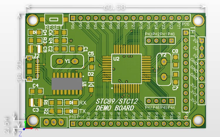 Базовая плата STC12 STC12C5A60S2 51 с одним чипом, минимальная системная плата для обучения, двойной последовательный порт