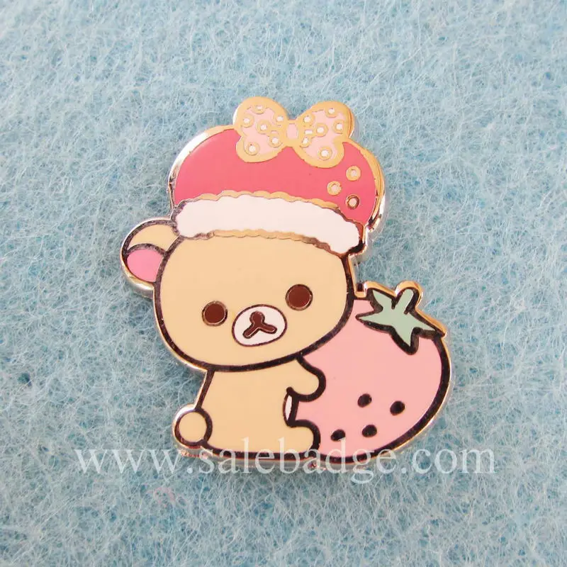 Продукт:На заказ, золотые металлические прекрасная мягкая игрушка клубничный медведь твердым эмалиевым покрытием цинковый сплав штырь отворотом детский значок