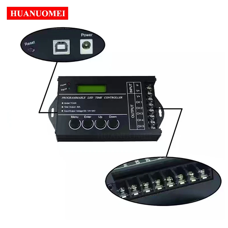 TC420 Программируемый Светодиодный контроллер времени является верхним компьютером в программируемом контроллере времени, чтобы изменить выходную нагрузку с течением времени, клиент может настроить режим графика, который они хотят, через верхний ПК. Затем через порт USB для загрузки необходимого расписания к контроллеру. Верхний ПК в дополнение к функции редактирования режима расписания, это также может быть время установки для контроллера из-за синхронной функции часов верхнего хоста. Если пользователь хочет увидеть эффект режима расписания после редактирования, он может использовать функцию быстрого сева верхней части. Из-за отсутствия функции удаления верхнего хоста, Отображение имени режима будет пустым до тех пор, пока вы выполните удаление. Этот контроллер может управлять нагрузкой светодиодного эффекта изменения не более пяти каналов. И его можно использовать в одноцветных светодиодных Лампах, цветных светодиодных Лампах RGB, светодиодных лентах, светодиодных модулях, светодиодных жестких полосах, освещении растений, рекламе световых коробок, сцене, украшение для дома и т. Д. Технические параметры