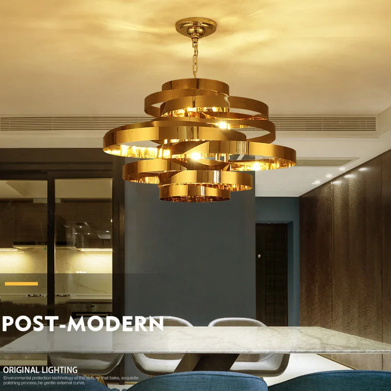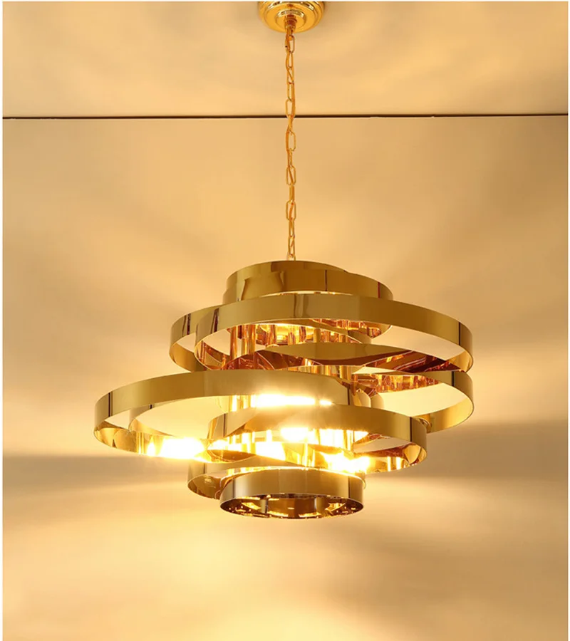 Современный подвесной светильник в стиле арт-деко Tornado, светодиодный светильник из нержавеющей стали с золотым кольцом, подвесной светильник 5 шт., E14, лампа для отелей Спецификация: Современный светодиодный подвесной светильник Размер светильника: H 43 см x диаметр 72 см Источник света: Светодиодная лампа E14 3W Корпус светильника: золотистый Материал корпуса: покрытие из нержавеющей стали Длина цепи: 0,4 м Регулируемая Применение: Чайный домик чайный бар Домашний декор осветительный прибор для гостиной паба Посылка включает: 1 шт. современный светодиодный светильник с покрытием из нержавеющей стали с держателем лампы E14