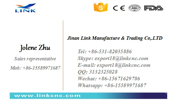 Jinan Link Manufacture and Trading Co.,LtdЯвляется современным предприятием, интегрирующим reach и развитие,Производство, продажа и послепродажное обслуживание, расположенное в Цзинань, провинция Шаньдун, Китай. Наша основная продукция: станки с ЧПУ, лазерные станки с ЧПУ и плазменные станки с ЧПУ. Кроме того, наша машина может быть специально настроена в соответствии с вашими требованиями.