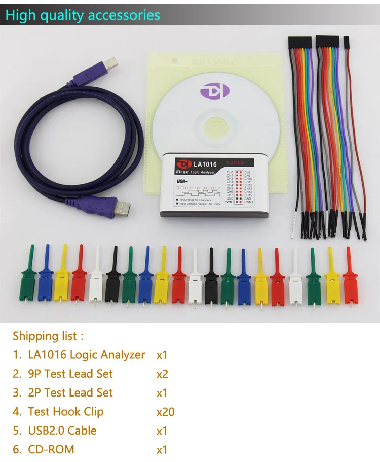 LA1016-высокопроизводительный логический анализатор с 16 каналами и скоростью выборки 100 м. Состоит из двух частей: программного обеспечения на персональном компьютере и аппаратном оборудовании. Он имеет преимущества высокой частоты выборки, большой глубины выборки, просты в использовании и т. д.LA1016 может одновременно использовать 16 цифровых сигналов. Затем отобранные данные могут отображаться, анализироваться, экспортироваться и сохраняться на компьютере. Программное обеспечение также может декодировать данные, если они соответствуют стандартному протоколу поддерживаемого программного обеспечения. Затем декодированные данные могут быть отображены, экспортированы и сохранены.Особенности:Портативный и легкий100 м Частота выборки @ полные каналыБольшая глубина выборки и поддержка сжатияВстроенный генератор PWMСовместимый интерфейс USB2.0/3,0Мощное программное обеспечение и простота в использованииПоддержка онлайн обновления автоматическиСпецификация:· Количество входных каналов: 16· Максимальная частота дискретизации: 100 м· Ширина полосы измерения: 20 м· Минимальная ширина импульса может быть снята: 20 нс· Размер аппаратной памяти: 1 Гбит· Глубина дискретизации оборудования: 50 м/канал· Максимальная глубина сжатия: 10 г/канал· Диапазон входного напряжения: -50 В ~ + 50 в· Входное сопротивление: 220KΩ, 12pF·