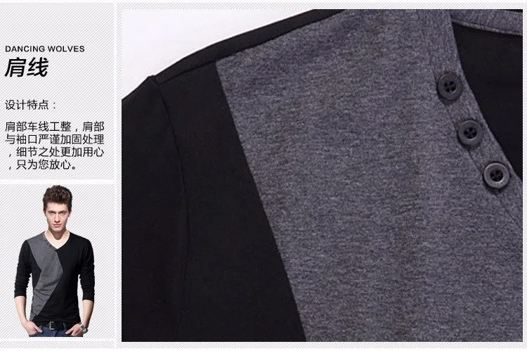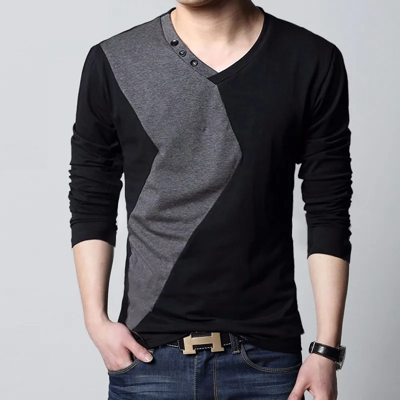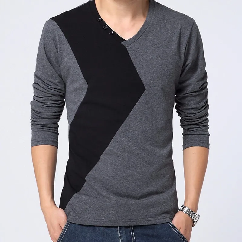 Мужская облегающая футболка с длинным рукавом, контрастный цвет, с v-образным вырезом, для фитнеса, большие размеры, весна 2019