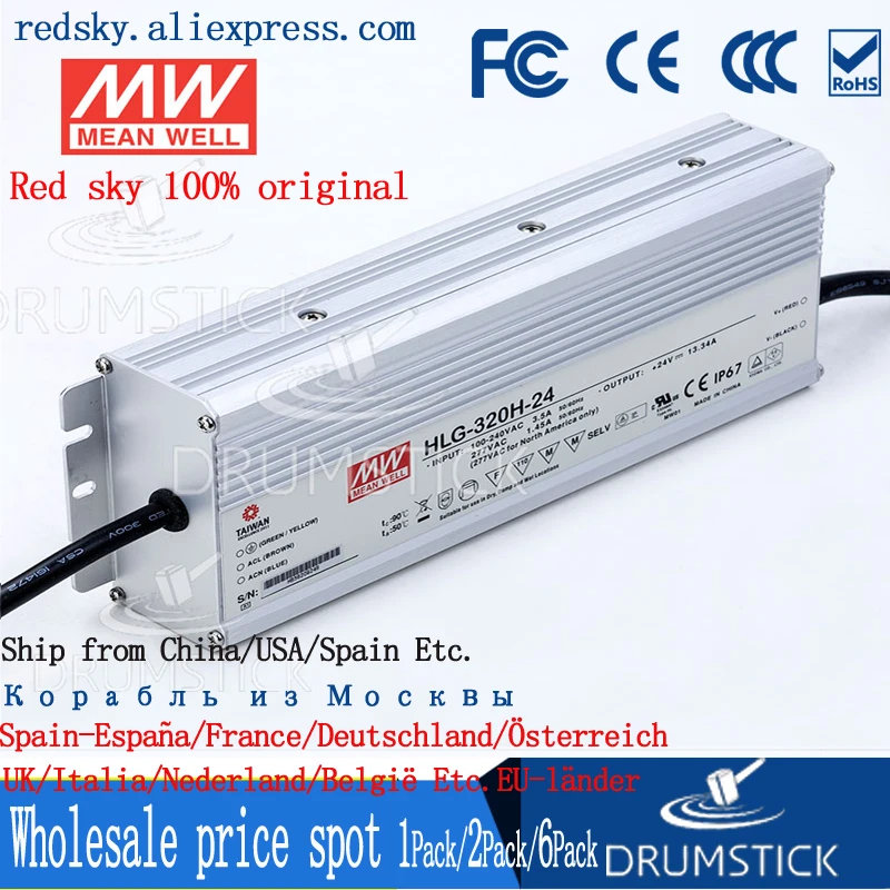 Хит! MEAN WELL оригинальный HLG-320H-24 24 V 13.34A meanwell HLG-320H 24 V 320,16 W одиночный выход Светодиодный драйвер питания