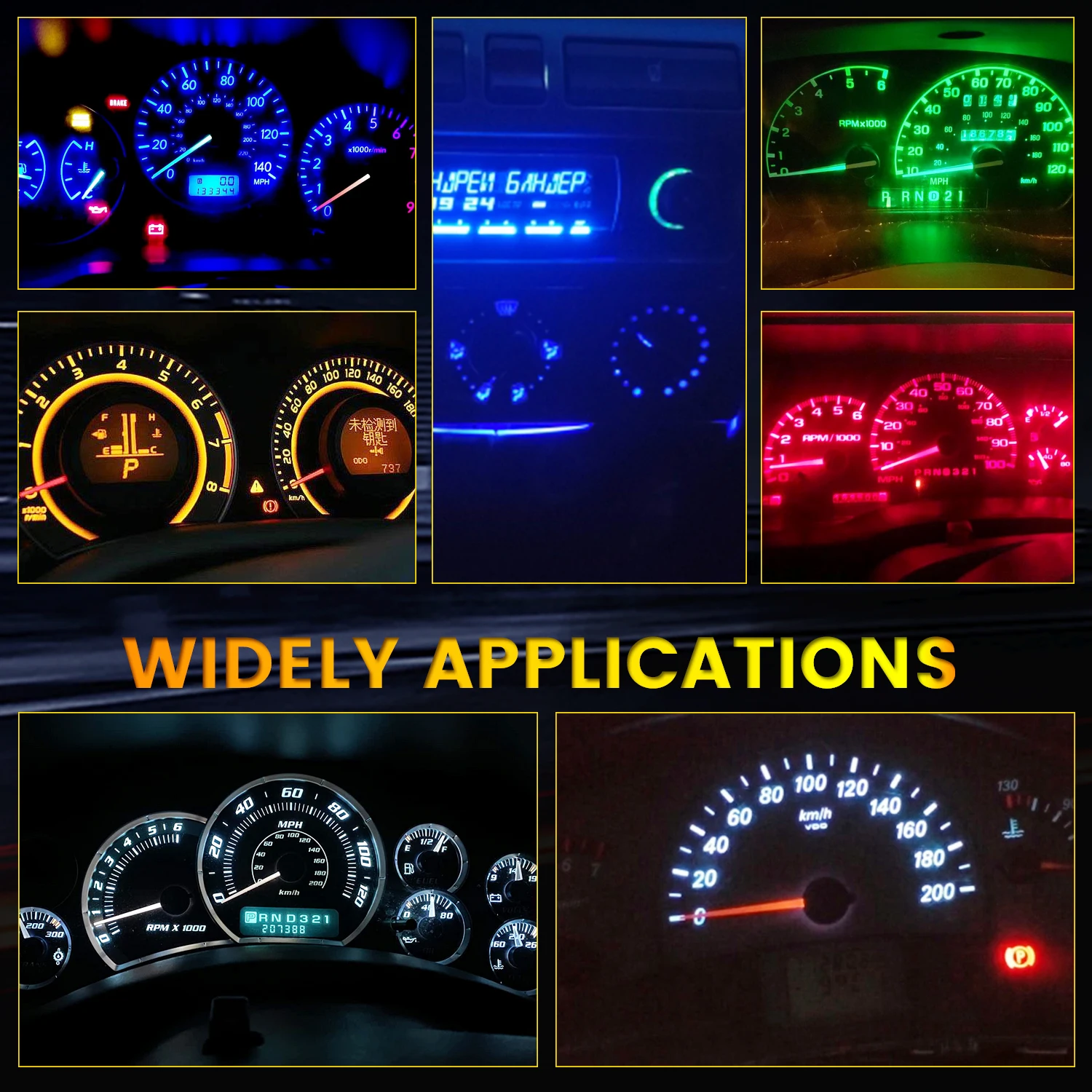 Применение:Внутренний светильник, светильник приборной панели s, светильник карты, предупреждающий светильник приборной панели, радио светильник, боковой светильник, индикаторный светильник