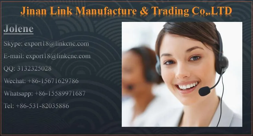 Jinan Link Manufacture and Trading Co.,Ltd Это современное предприятие, интегрирующее reach и развитие, производство, продажу и послепродажное обслуживание, расположенное в Цзинань, провинция Шаньдун, Китай. Наша основная продукция: станки с ЧПУ, лазерные станки с ЧПУ и плазменные станки с ЧПУ. Кроме того, наша машина может быть специально настроена в соответствии с вашими требованиями. Пожалуйста, свяжитесь с нами.