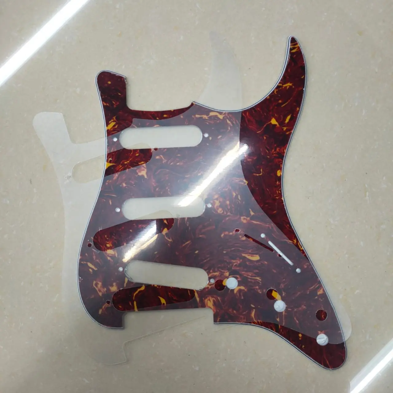 ▪Прозрачный шаблон: прозрачный ПВХ, отправит вместе с накладкой для поиска позиций винтовых отверстий. Он может быть размещен на вашем старом корпусе накладки или гитары, вы можете отметить точное расположение винтовых отверстий на шаблоне. Затем вы можете просверлить отверстия с задней стороны нового прибора в зависимости от шаблона. Поэтому вы можете получить новую накладку, которая идеально подходит к вашей гитаре, больше не беспокойтесь, что она не подходит!