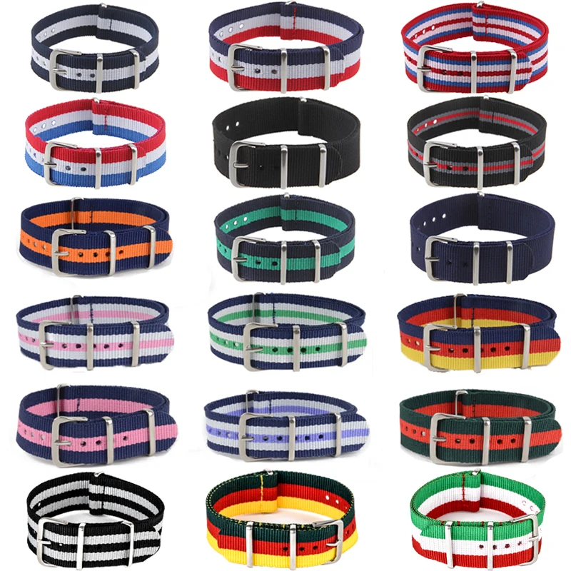 Повседневный ремешок для часов, роскошная нейлоновая ткань, 18 мм, 20 мм, 22 мм, сплав, пряжка, аксессуары для часов, цветные полосы, Ремешки для наручных часов, спортивный ремешокUS $1,53-1,54