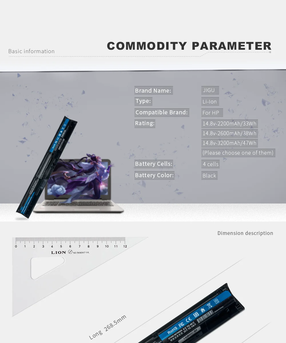 Название:JIGU ноутбука Батарея 805294-001 аккумулятор большой емкости HSTNN-Q94C P3G15AA HSTNN-DB7B HSTNN-Q95C RI04 HSTNN-PB6Q HSTNN-Q97C для HP ProBook 450 455 470 g3