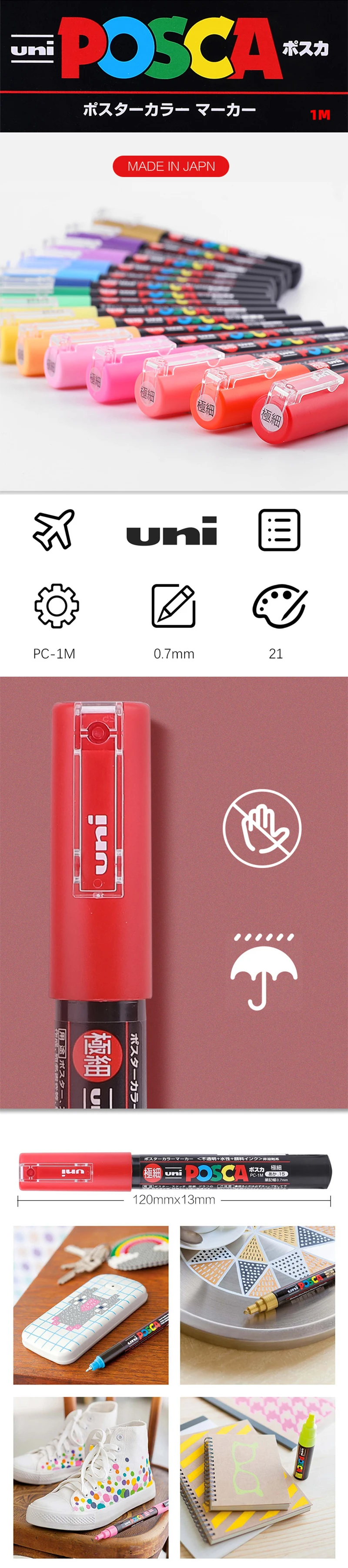Название товара: Uni POSCA PC-1M 12C краски маркер для белой доски Вес: 220 г/шт. Размеры обуви: заостренный носок: 0,7 мм ультратонкая пулевой наконечник 12 Цвета чехол Включает в себя: белый, желтый, синий, красный, бежевый, розовый, красный, оранжевый, желтый, светильник, зеленый, светильник синий, синий, оранжевый, коричневый, белый и черный. Эти маркеры можно писать на различных поверхностях, таких как: пластик, металл, дерево, стекло, штукатурка, холст и многое другое. Краска может быть удалена от непористых поверхностей, таких как стекло и т. Д., но будет постоянно прилипать к пористым поверхностям, таким как дерево, бумага и т. д. Пигментные чернила на водной основе нетоксичные, легкие и водонепроницаемые. Чернила не будут истекать через бумагу (в отличие от маркеров на спиртовой основе) и отлично подходят для ярких знаков и ремесленных работ.