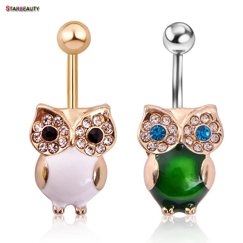 1 шт./заказ красивый пирсинг в виде совы и пупка Ombligo для женщин 14 г зеленый камень кошачий глаз пирсинг для живота номбрил пупка Кольца пирсинг