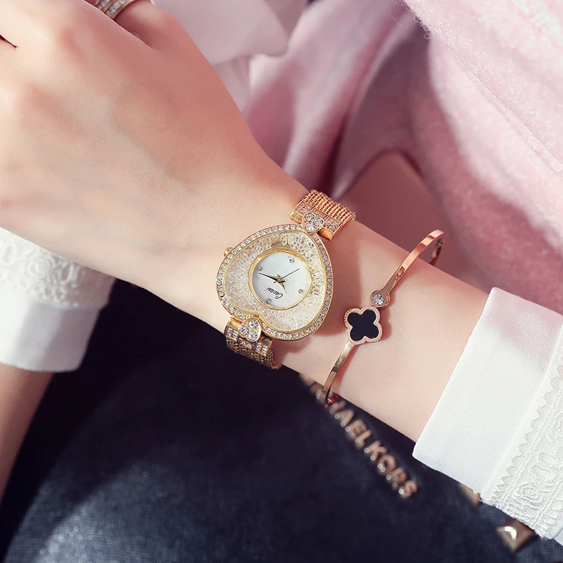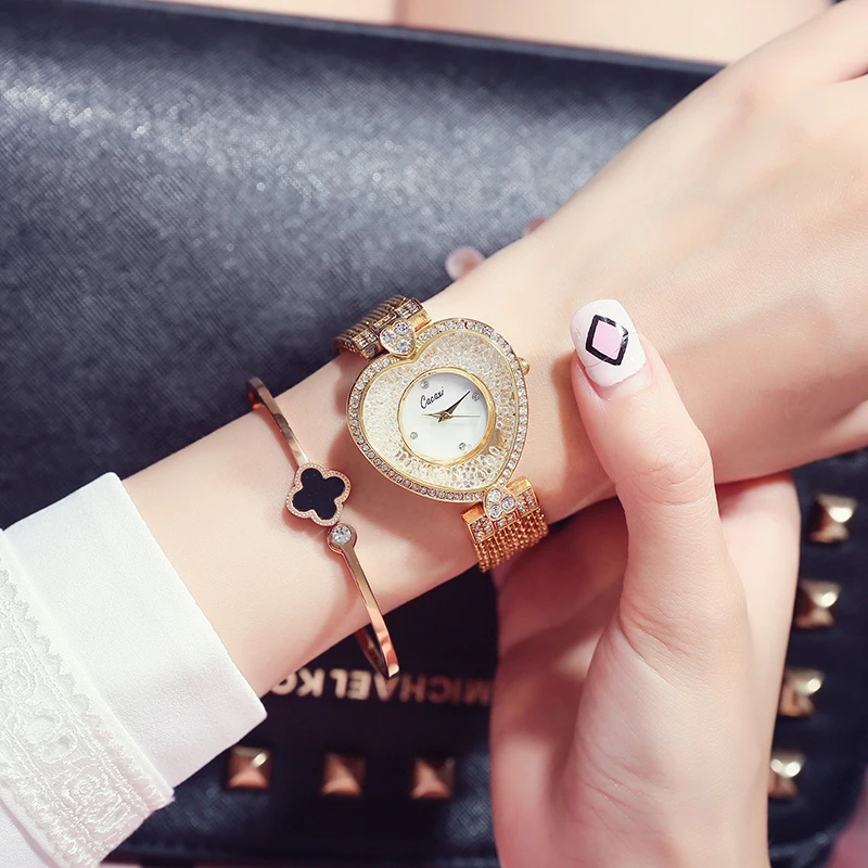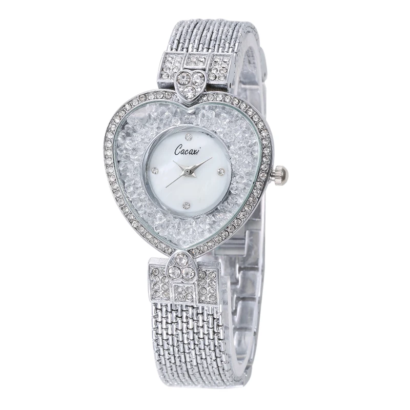 Уникальный браслет Cacaxi с блестящим стеклом, украшенным циферблатом, с сердечком, женские часы, 2019, брендовые роскошные женские часы, кварцевые часы, A122