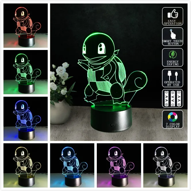Не только стереоскопическое 3D освещение, но и показывает ваш Красочный световой эффект, кнопка переключения для управления цветом света, семь цветов и один градиентный цвет для выбора просто нажмите кнопку включения на базе ABS