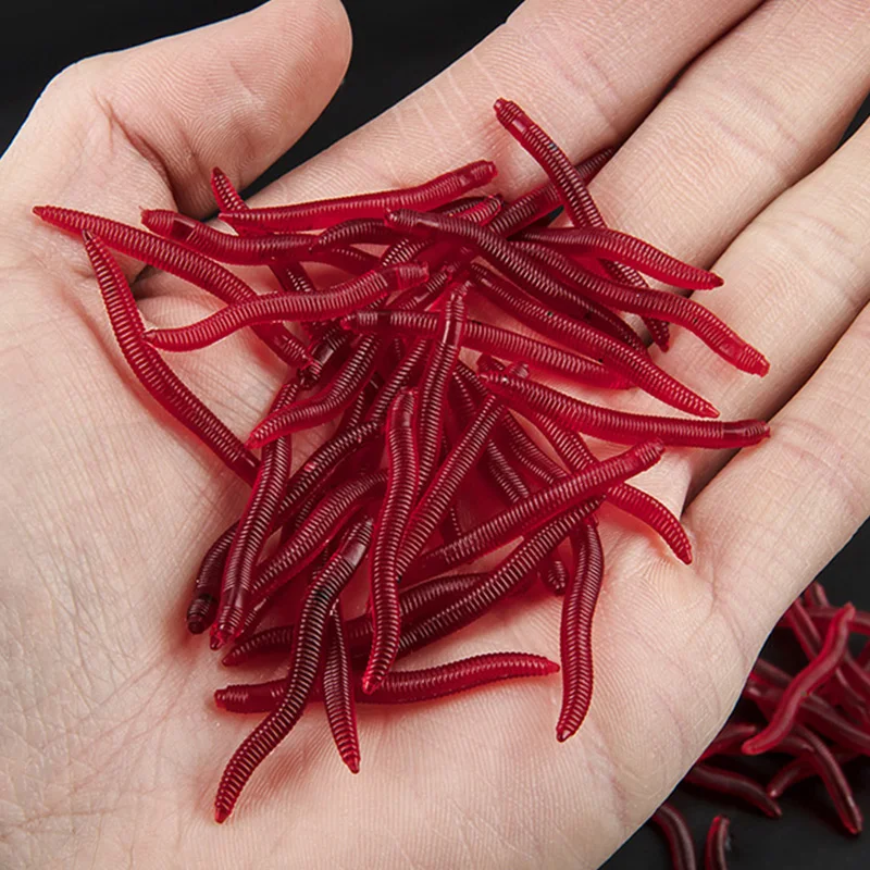 50 или 100 шт./лот рыболовные приманки в виде красных червей, силиконовые мини рыболовные приманки с запахом креветки, Джеркбейт, рыба, океанская скала, окунь, мягкие приманки для окуня