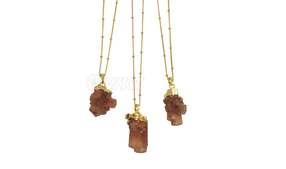 WT-N911 оптовый заказ; Сделаны из Натурального Коричневого арагонита камень с 24K, покрыто настоящим золотом, Цепочки и ожерелья. Милый кулон из натурального камня